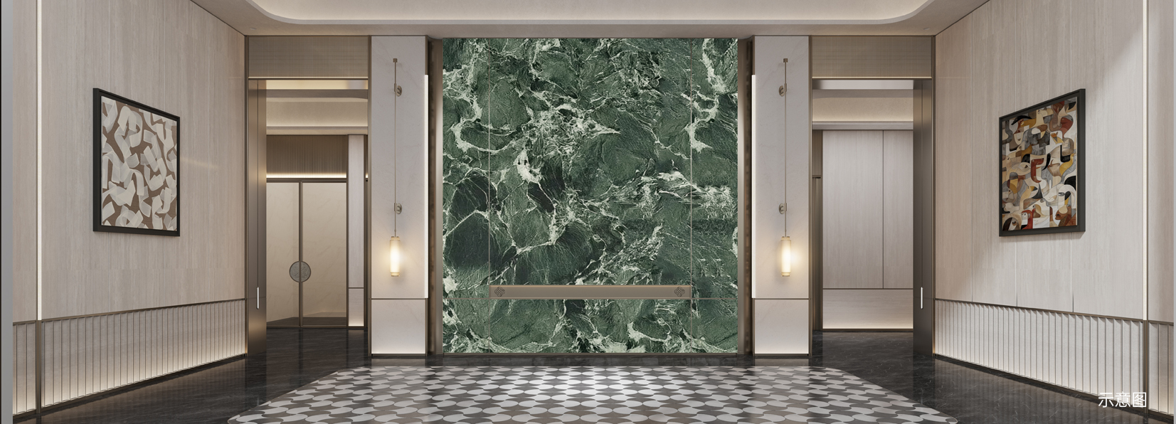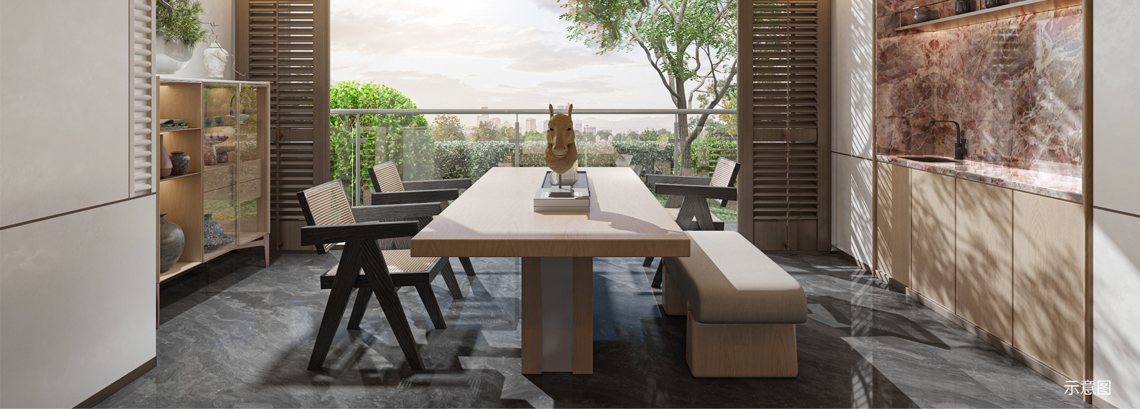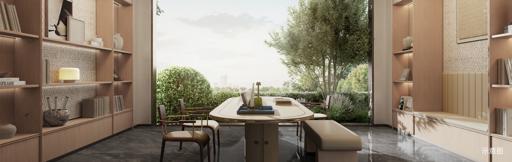 现代美学风格,大面积玻璃立面,270°环幕视野。