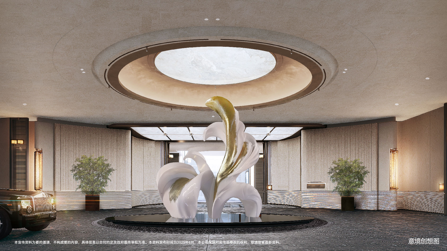 惟一下沉庭院:20m悬挑水景、8.4m玻璃悬浮亭,完成从喧嚣到隐奢的领域切换。